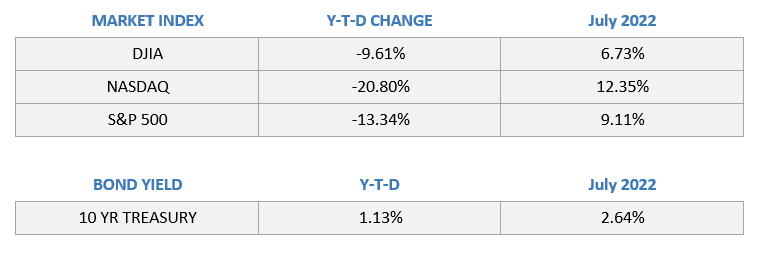 Stocks posted big numbers in July, erasing some of their first-half losses. Investor sentiment was lifted by receding inflation and recession worries and a better-than-expected start to the second quarter earnings season.